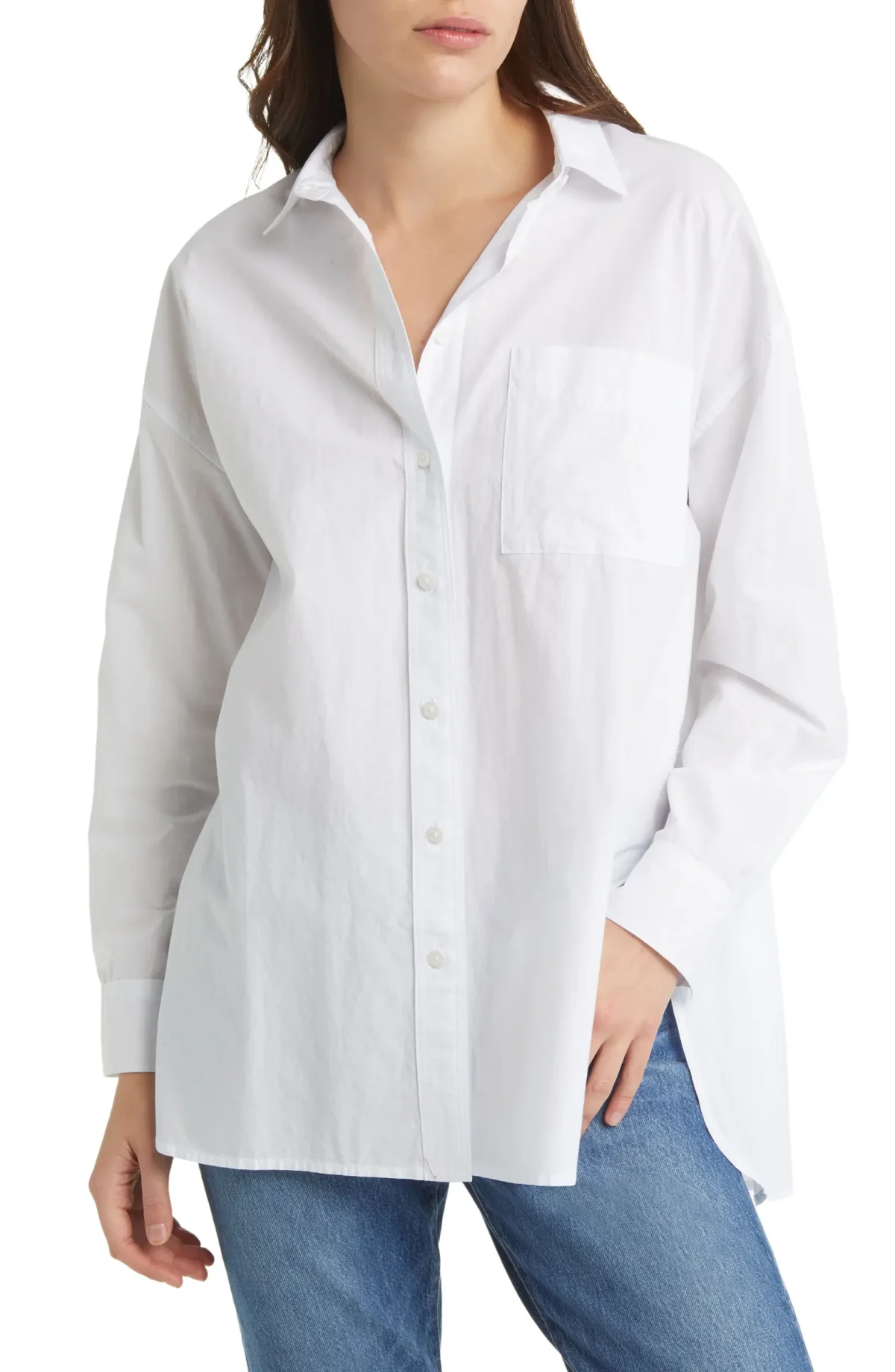 We love a feminine silhouette and this casual outfit achieves just that. Pair a crisp white shirt with mid-wash jeans, a red sweater, and red mary-janes or ballet flats for a timeless, yet trendy look. Add a red bow to your hairstyle to complete this look for a romantic touch.